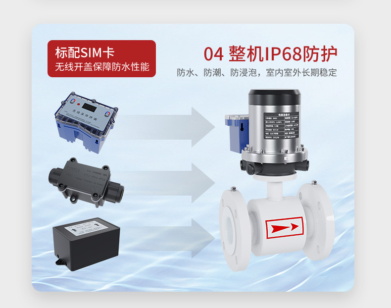 产品描述:无线电磁流量计由电磁流量计和 4G 无线远传模块共同组成,用于测量封闭管道内导电液体的瞬时流量和累积流量。测量数据通过 4G 信号远传至网络接收平台,用户可以通过浏览器、微信公众号等方式灵活方便地查看数据、远程配置参数等功能,实现智能物联。广泛应用于自来水、化工、煤炭、环保、轻纺、冶金、造纸等行业。
