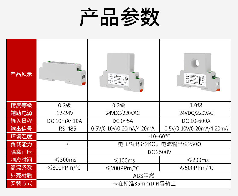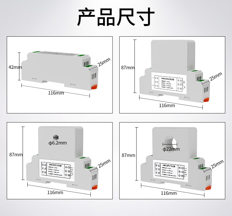 产品描述:电流变送器是一种将被测交流/直流信号转换成直流电流、直流电压并隔离输出模拟信号或数字信号的装置。采用新型电磁隔离,24V辅助供电三重隔离标准,接线式/穿孔式安装标准导轨和螺钉安装,安全可靠。
