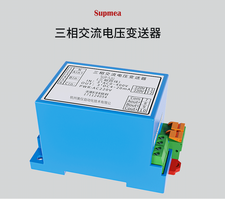 产品描述:三相电压变送器采用新型电磁隔离,三相三角形接法交流电压输入,用于测量三相三角形接法交流电压,特别使用于工频50Hz正弦波三相三角形接法交流电压,性能/价格比,耗电损,体积小,重量轻,安装简便,测量电压直接输入,广泛用于测量三相三角形接法交流电压的场所