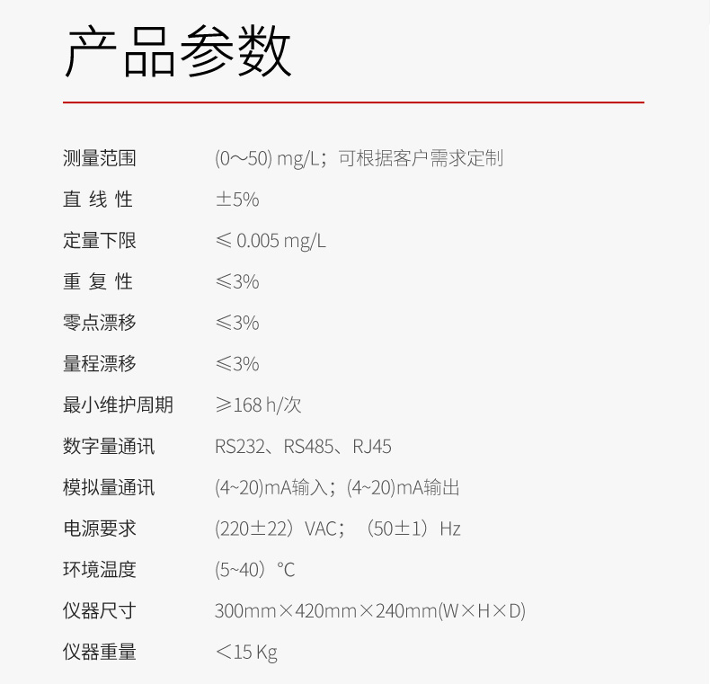 产品描述:TP 型总磷水质在线分析仪采用钼酸铵分光光度法检测,符合《总磷水质自动分析仪技术要求》(HJ/T 103)、《水质 总磷的测定 钼酸铵分光光度法》(GB 11893)、《污染物在线自动监控(监测)系统数据传输标准》(HJ 212)、《地表水自动监测仪器通信协议技术规定》等标准和规范的要求。