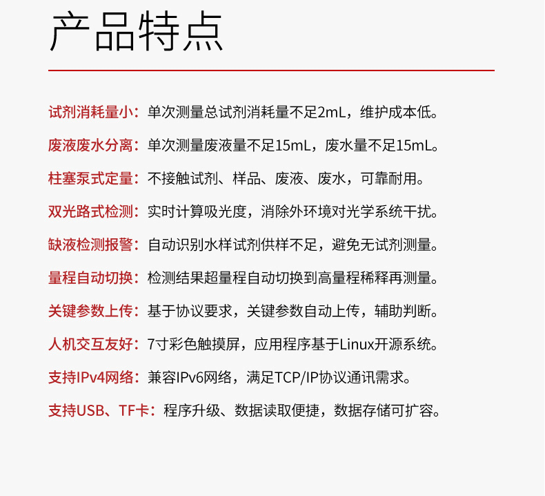 产品名称:美仪_ TP 型总磷水质在线分析_试剂消耗量小,柱塞泵式定量,缺液检测报警,支持USB、TF卡
