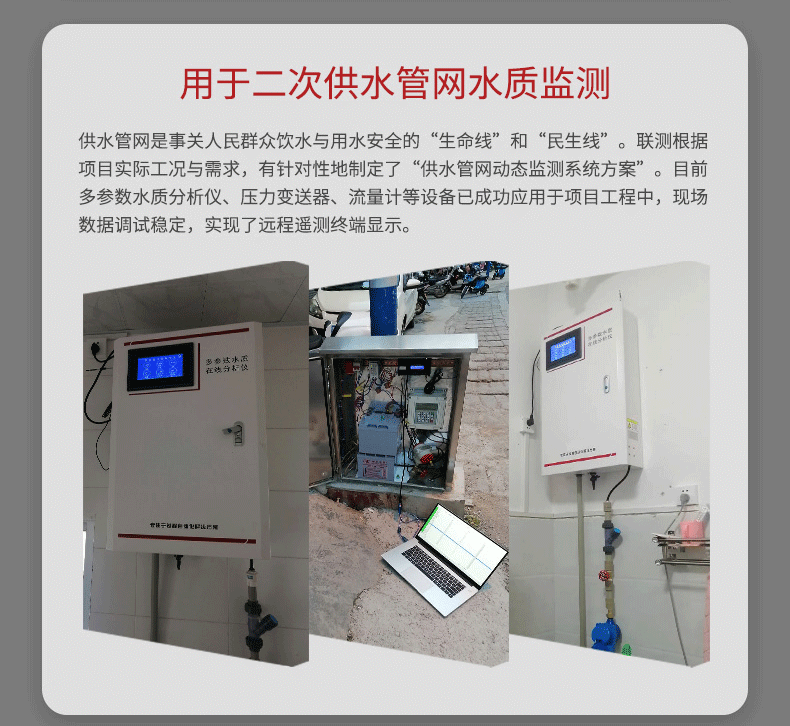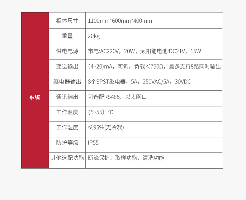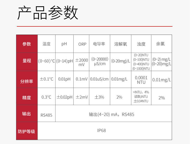 产品描述:一套系统可测量多种水质参数,测量参数可选,精度高,重复性好,传感器可任意组合。安装简单易行,维护方便,无须添加试剂。没有试剂消耗不会产生二次污染、无废液,在一定范围内对电极进行温度补偿,多种输出方式可选(模拟量(4~20)mA,RS485,以太网口)