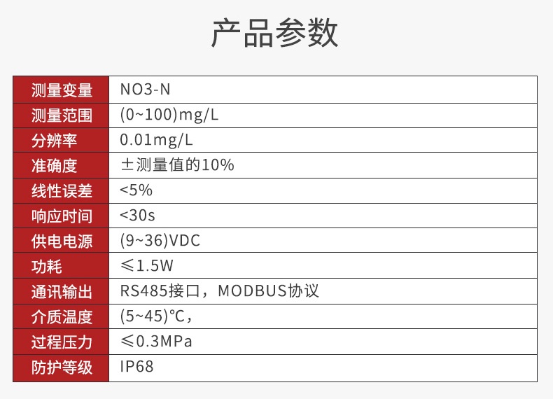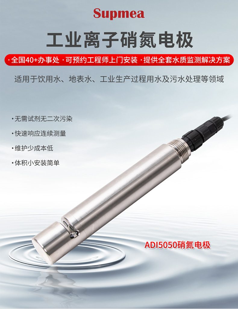 产品描述:ADI5050款硝氮电极是基于紫外光吸收法测量,一种利用紫外光谱分析技术,直接、快速、准确地测量水体中硝态氮,(NO3-N)浓度的先进在线监测设备。通过校正公式消除有机物干扰,最终根据朗伯-比尔定律将计算出的净吸光度值实时转换为硝酸盐氮(NO3-N)的浓度值,并通过数字信号输出。