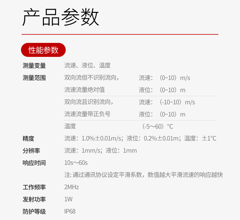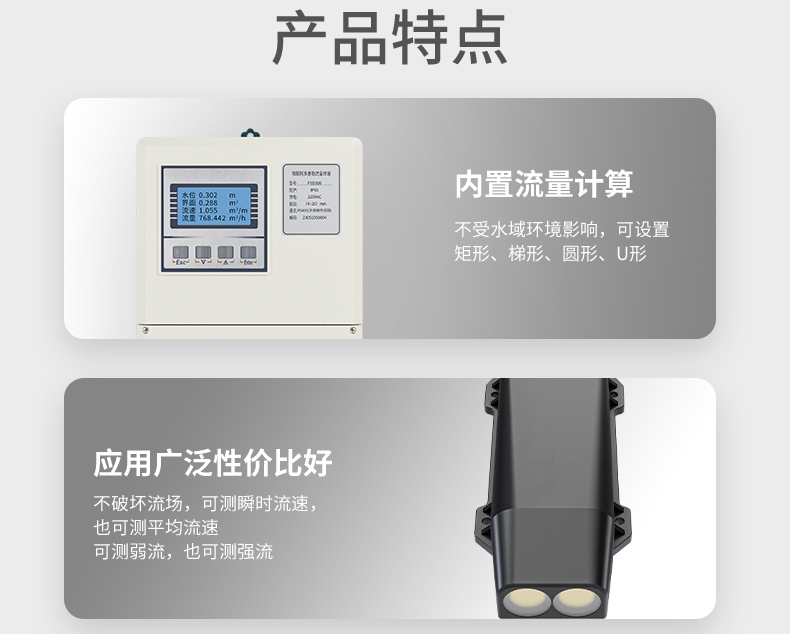 产品描述:本产品是在自然水域或者渠道、管道中测量水的流速、流量的仪表,利用超声波技术探测流速,测量点在机体前方,不破坏流场;测量精度高,测流线性,可测瞬时流速,也可测平均流速;无转动部件,不惧泥沙堵塞和水草缠绕,探头坚固耐用,不存在泥沙堵塞或水草、杂物缠绕等问题,最适用于泥沙悬浮物含量高,水草等漂浮物多和极其严苛的冰期场合的河流中测量。CN1