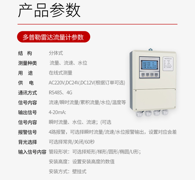 产品名称:SUP-FDC300多普勒雷达流量计