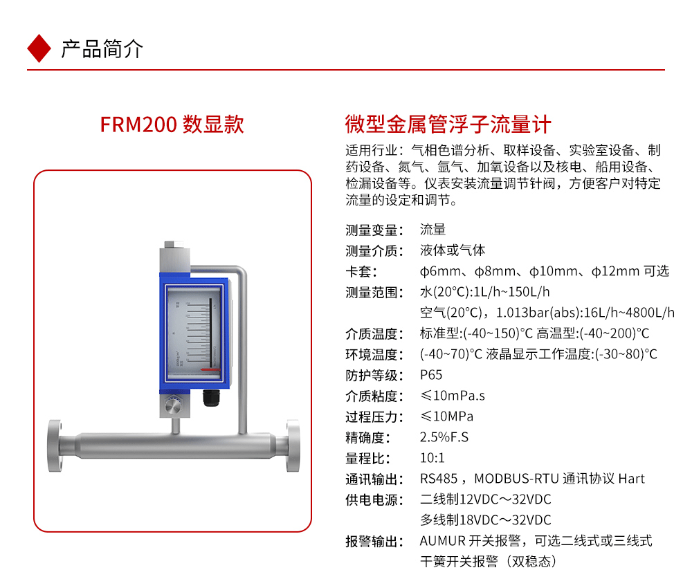 产品名称:美仪SUP-FRM200微型金属管浮子_数显款_
