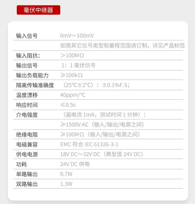 产品名称:美仪电阻/毫伏信号中继器
