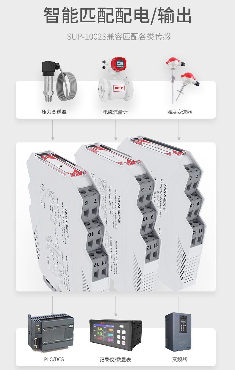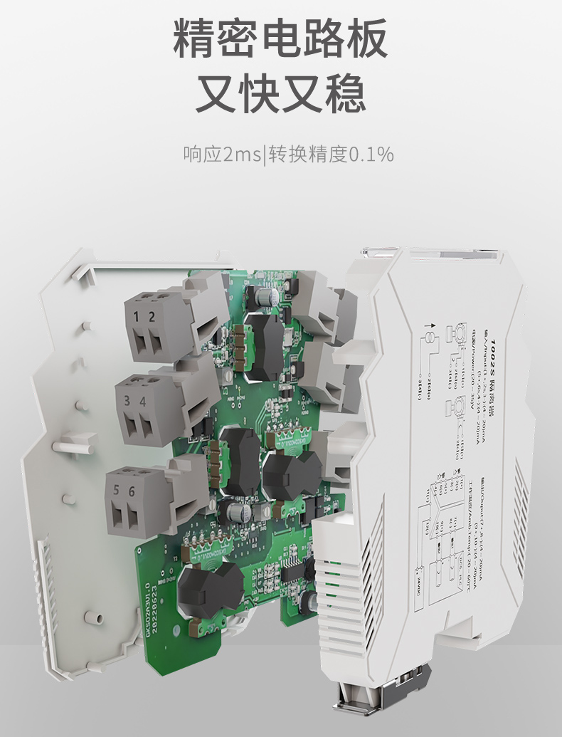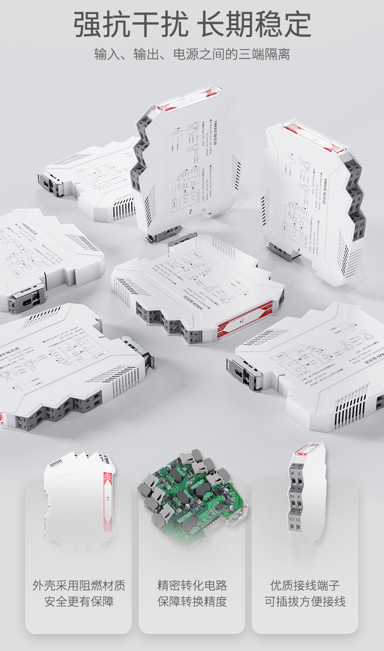 产品描述:1001S隔离器给二、三线制变送器提供隔离的电源,将变送器产生的信号隔离并转化为其它仪表所需的信号。实现输入、输出、电源之间的三端隔离,从而提高工业过程自动控制系统的抗干扰能力,保证系统的稳定性和可靠性。
