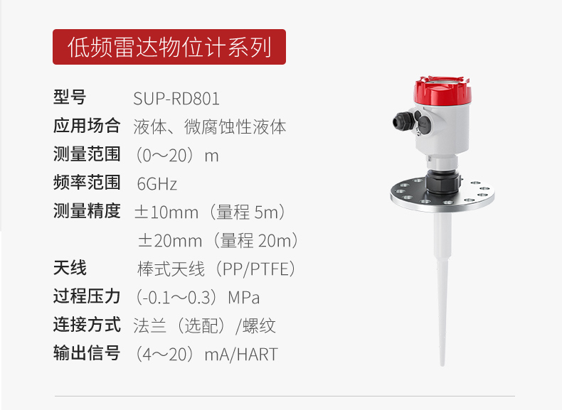 产品名称:美仪_SUP-RD801低频雷达液位计_适用于液体,微腐蚀性液体_
