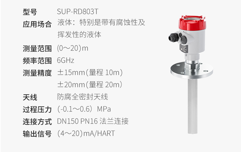 产品名称:美仪_SUP-RD804低频雷达液位计_适用于挥发性液体_
