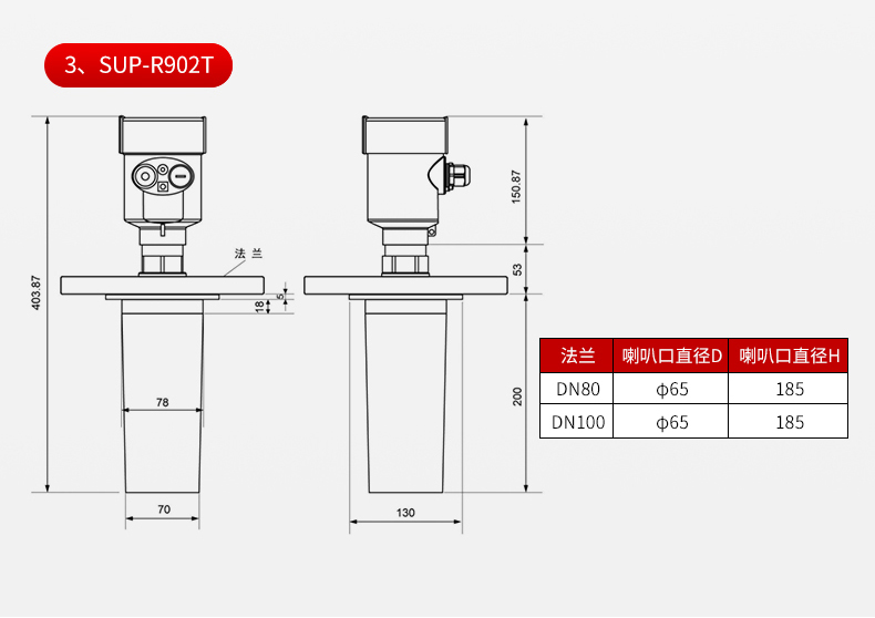 产品名称:美仪_SUP-RD902/902T雷达液位计_适用于高温高压的液体