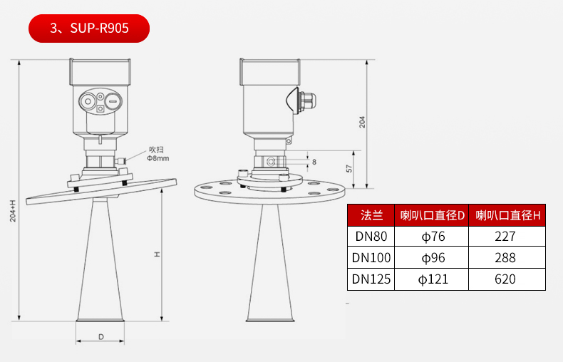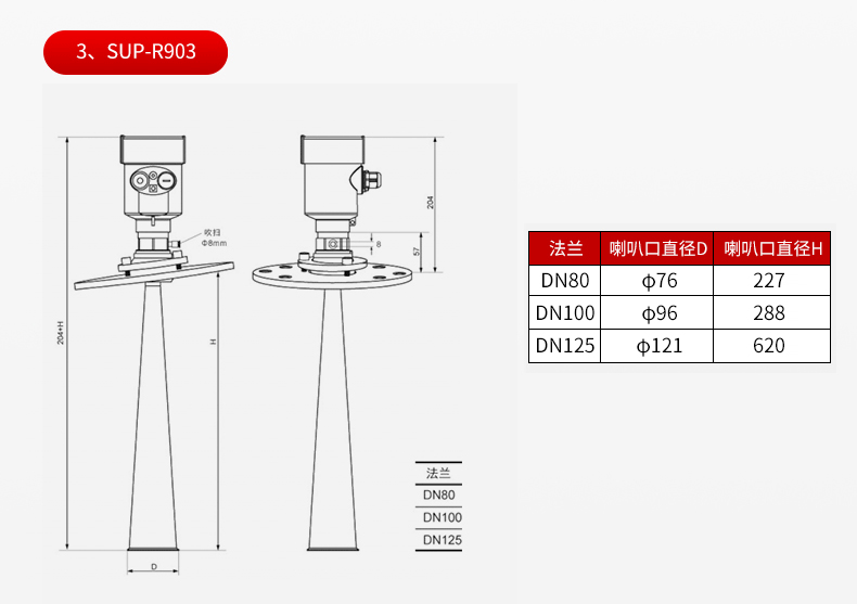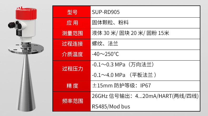 产品名称:SUP-RD905雷达料位计_适用于固体颗粒、粉料