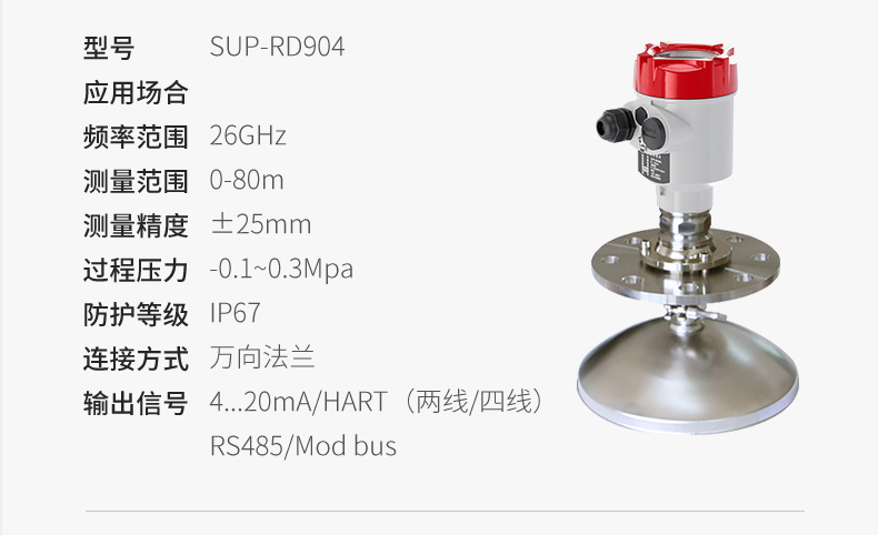 产品名称:美仪_SUP-RD904雷达液位计_适用于强粉尘、易结晶 _