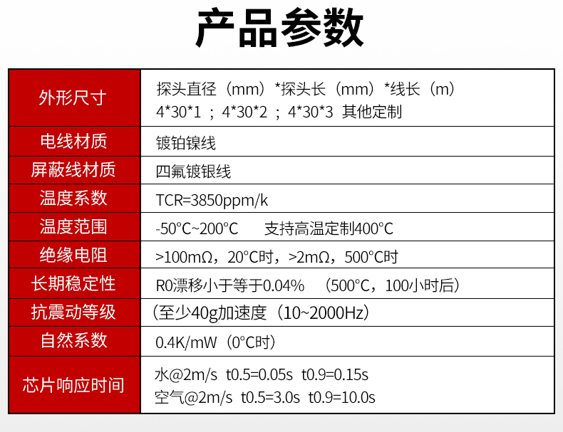 产品名称:美仪_ Pt100引线式温度螺纹款