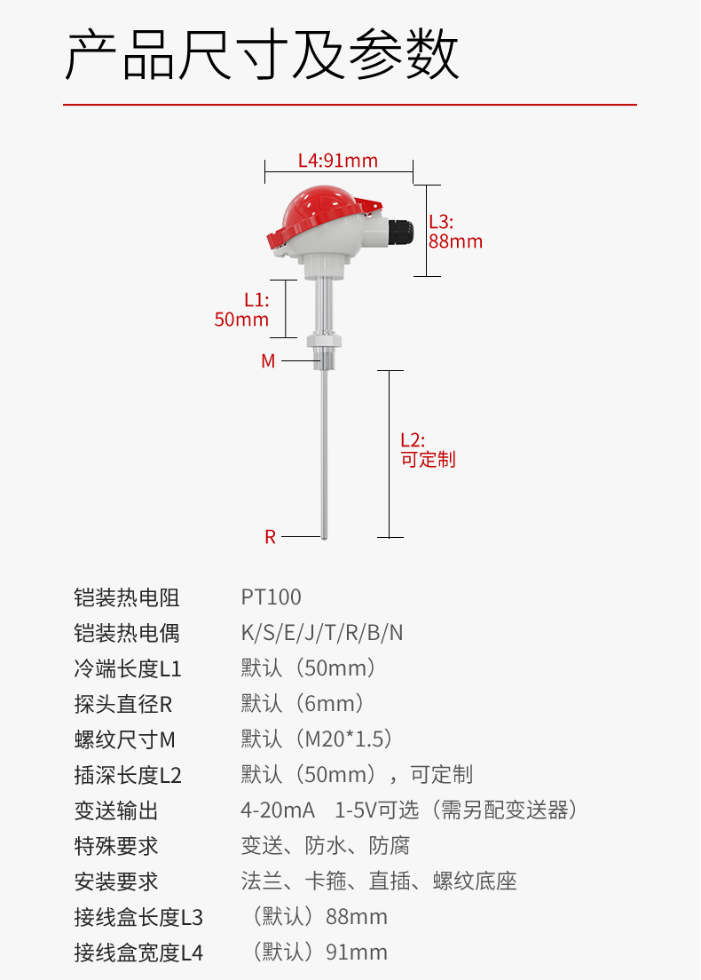 产品名称:美仪_SUP-WZPK_铠装温度传感器WZPK