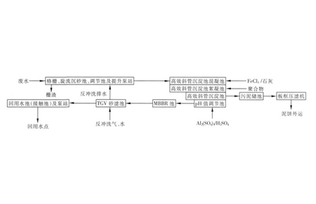冶金厂废水主要由各循环系统的排污水、及雨水组成,具有以下特点: 各循环系统定时排污,水量、水质变化大; 所含污染物以无机物为主,但含少量有机污染物,可生化性差; 总硬度、 总碱度较高; 含有少量浮油。为实现节能减排,现多 数冶金企业将综合废水收集在一起,处理后作为生产补水全部回用。