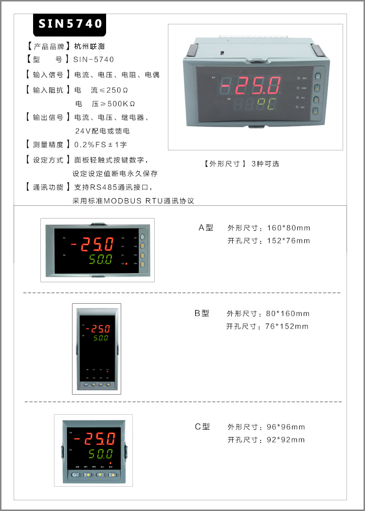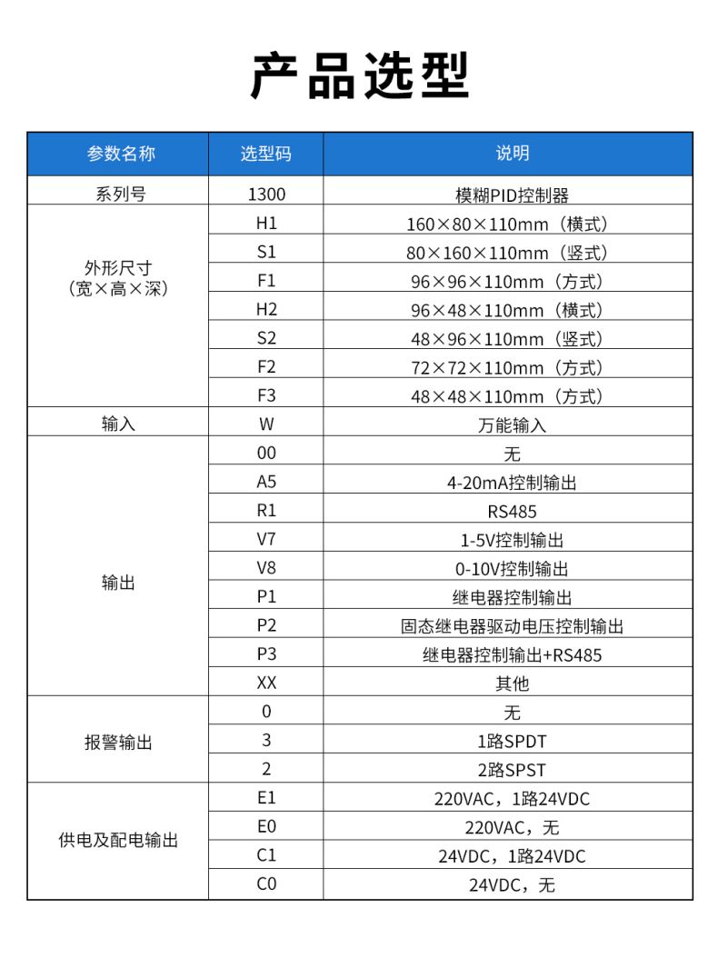 产品描述:SUP-1300模糊 PID 温控器/调节仪采用模糊 PID 算式,无需人工整定参数,控温精度基本达±0.5℃,无超调、欠调,性价比高。傻瓜式操作,7 款外型尺寸,支持 33 种信号输入功能。