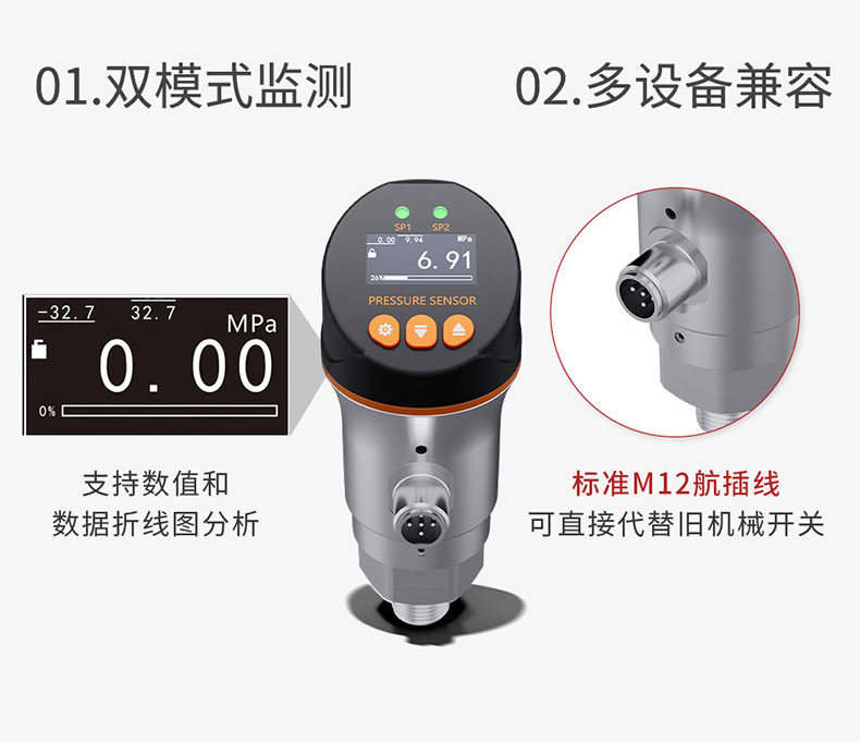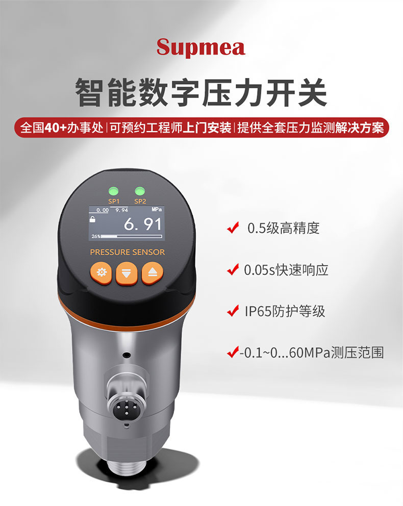 产品描述:PS100 是一款智能数字压力开关,由联测仪表(Sinomeasure)生产。它集压力测量、显示与控制于一体,适用于对304不锈钢无腐蚀的介质(如水、油、空气等)。产品具备高精度、快速响应、抗干扰能力强等特点,可替代传统机械式压力开关。