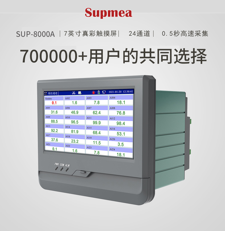 产品名称:美仪_SUP-R8000A_(触摸屏)0.5S高速采集_1-24路可选_7英寸无纸记录仪__温度_压力_多种参数