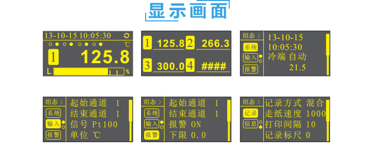 产品描述:混合式打印记录仪是专业针对工业现场设计的多功能智能记录仪。 提供多路高精度模拟信号输入通道,可配置多路报警,提供传感器配电; 采用高精度热敏打印机,实现数据、曲线和混合打印;配备有高亮高清 晰 OLED 液晶屏,提供实时数据显示。