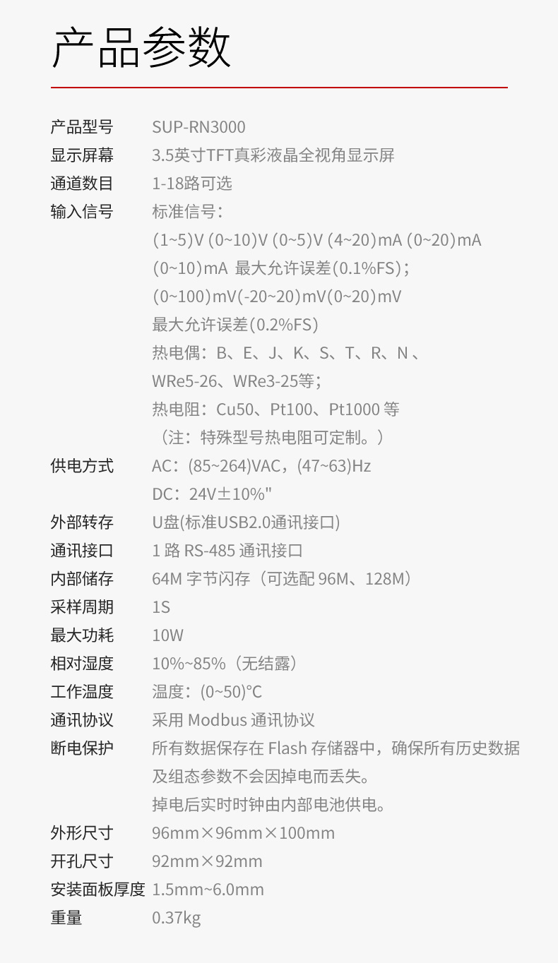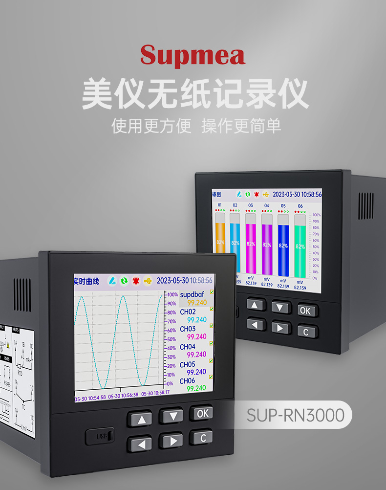 产品名称:美仪_SUP-RN3000-1_18 路万能模拟输入 3.5 英寸彩色液晶屏无纸记录仪_温度_压力_多种参数