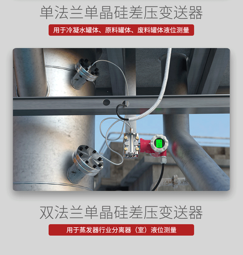 产品名称: 美仪_SUP-2051DP-D单晶硅双法兰液位变送器 封口罐 /闭口罐 液体 _