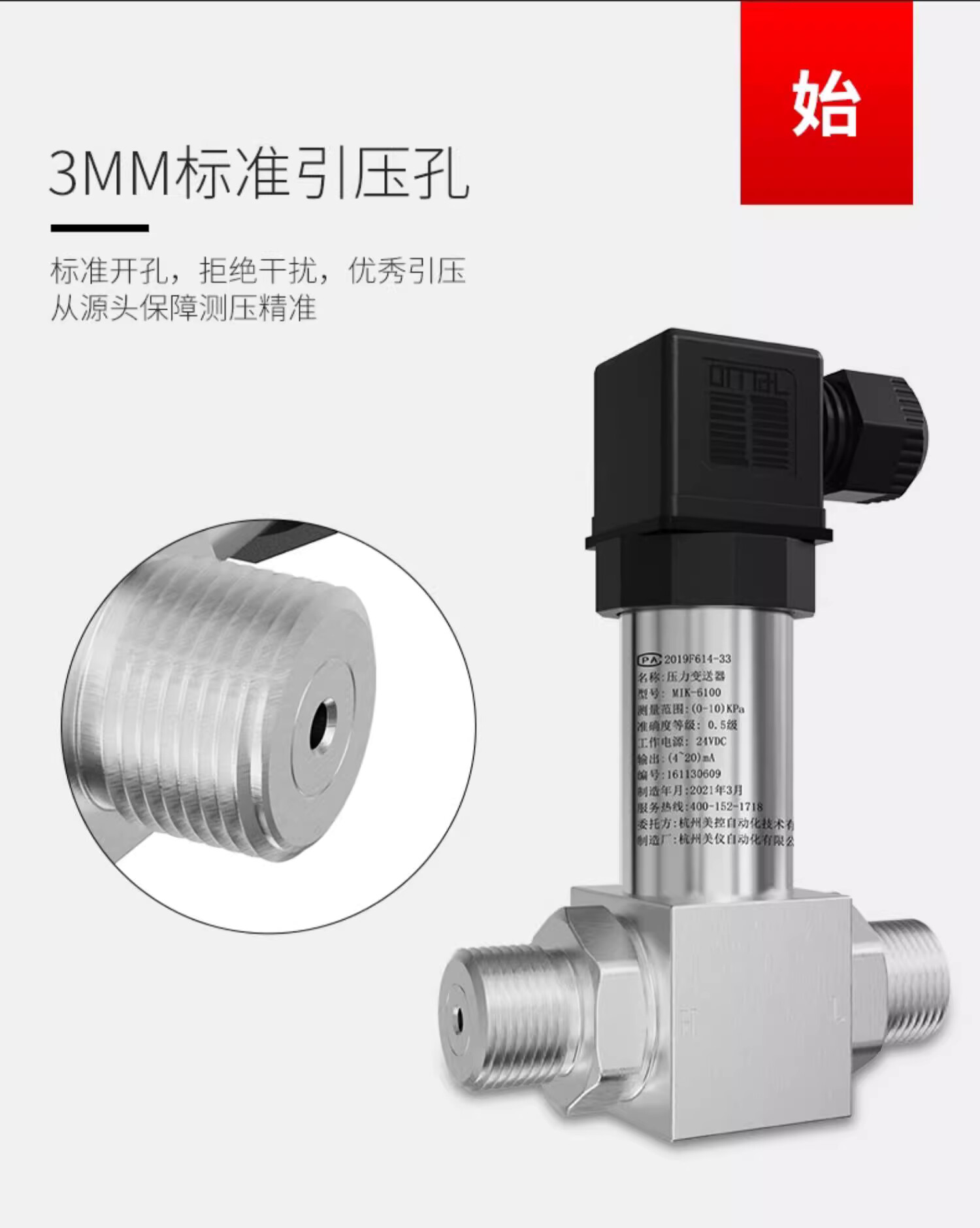 产品描述:SUP-6100系列一体化差压变送器采用OEM硅压阻式差压充油芯体组装而成。外壳为全不锈钢结构,两个压力接口为螺纹连接,可直接安装在测量管道上或通过引压管连接。 SIN-6100系列有标准电压、电流输出等可供选择,可以很方便地安装使用,广泛应用于过程控制,航空,航天,汽车,医疗设备,HVAC等领域的差压、液位、流量测控等。