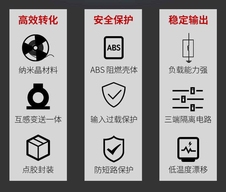 产品描述:电流变送器是一种将被测交流/直流信号转换成直流电流、直流电压并隔离输出模拟信号或数字信号的装置。采用新型电磁隔离,24V辅助供电三重隔离标准,接线式/穿孔式安装标准导轨和螺钉安装,安全可靠。