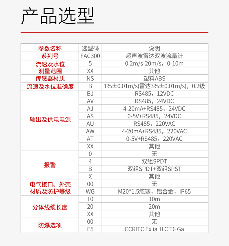 产品名称:美仪SUP-FAC300超声波雷达双波流量计