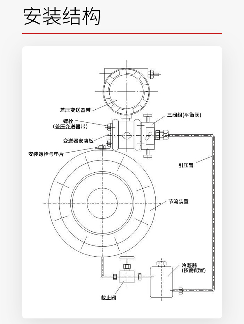 产品描述:本款孔板流量计适用被测介质宽广,几乎可用于所有气体、蒸汽和液体的流量测量,管径范围广;可耐高温耐高压可通过设置差压变送器量程在现场改变流量范围,使用、操作简单、易掌握,日常维护量小。