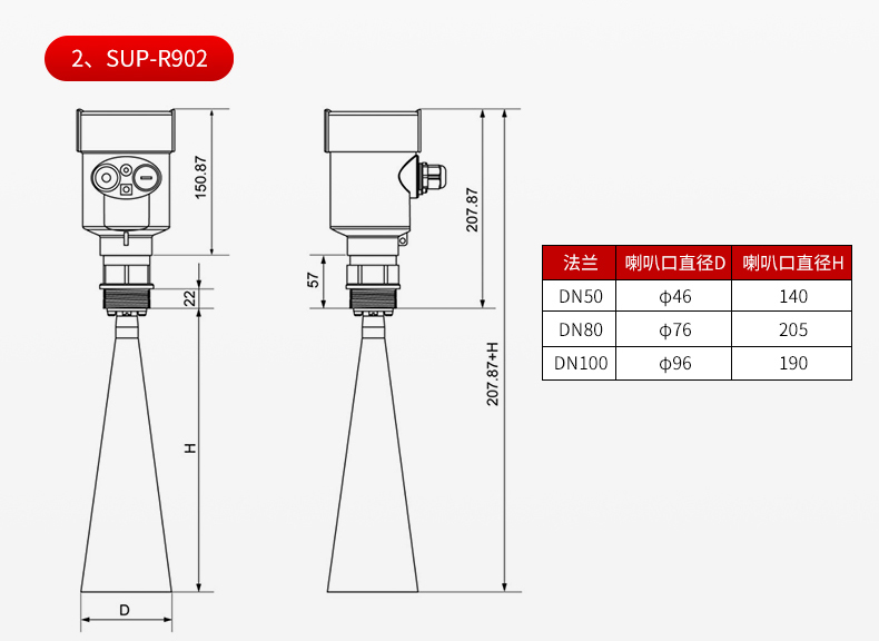 产品名称:美仪_SUP-RD902/902T雷达液位计_适用于高温高压的液体