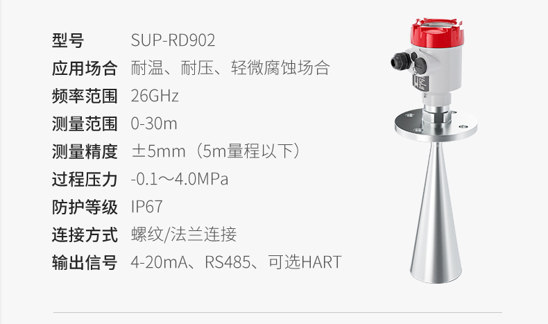 产品名称:美仪_SUP-RD902雷达液位计_适用于高温高压的液体_