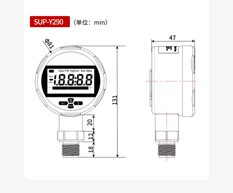 产品名称:美仪_SUP-Y190高精度智能数显压力表
