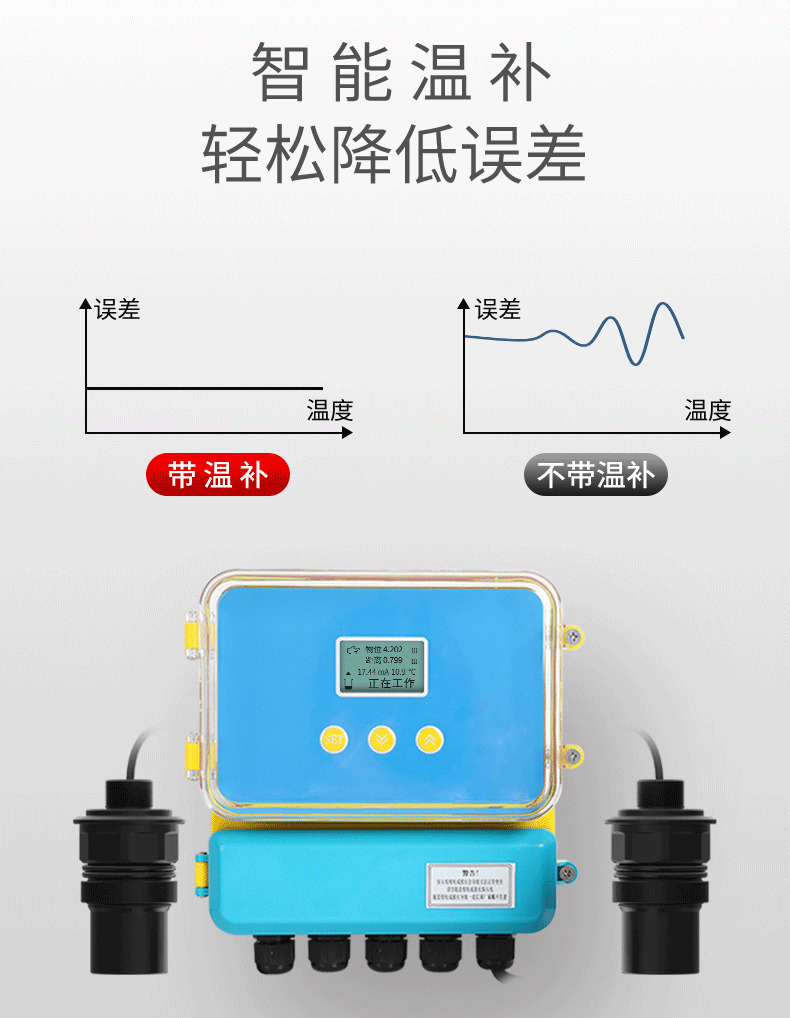 产品描述:超声波物位差计(料位,液位),是用来测量两个不同容器的液位 或者料位之间的高低差别。