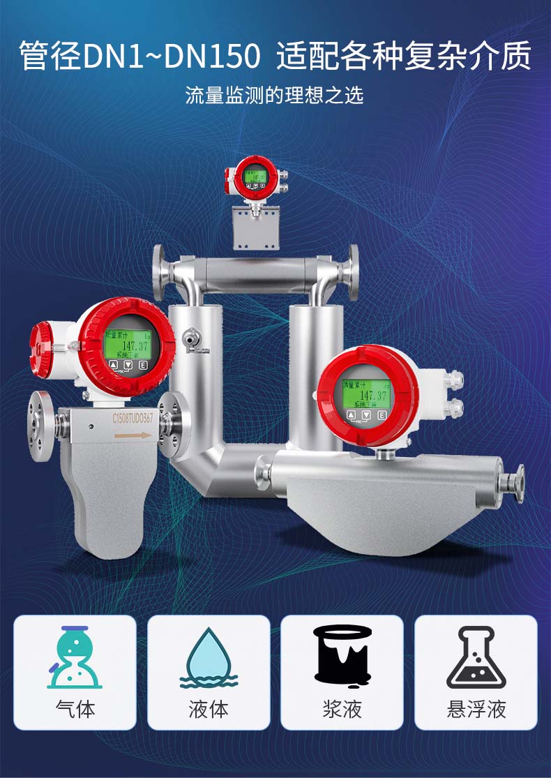 产品描述:科里奥利质量流量计是根据科里奥利力原理开发的一种新型的流量测量仪表,可直接测量封闭管道内流体的质量流量、介质的密度和温度。可广泛应用于化工、石油、食品、制药、造纸等行业。